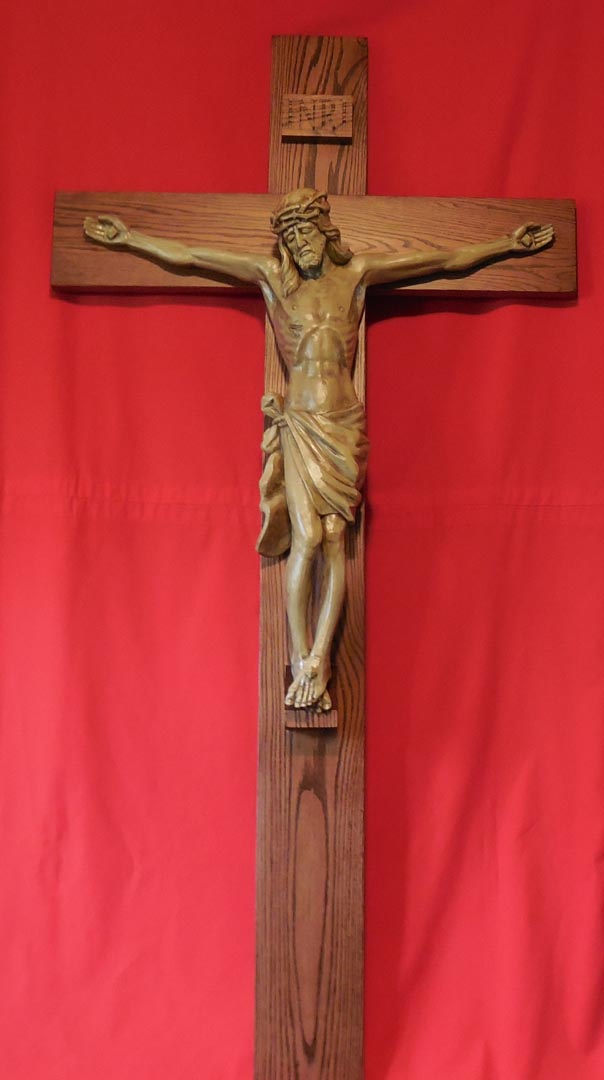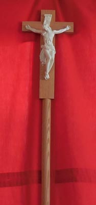 #379 - Processional see additional photo! Carved lindenwood Custom made for St. Vincent de Paul Parish in February, 2015. Size = 56" Price = $750 |