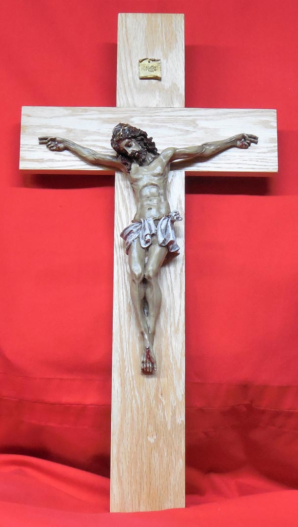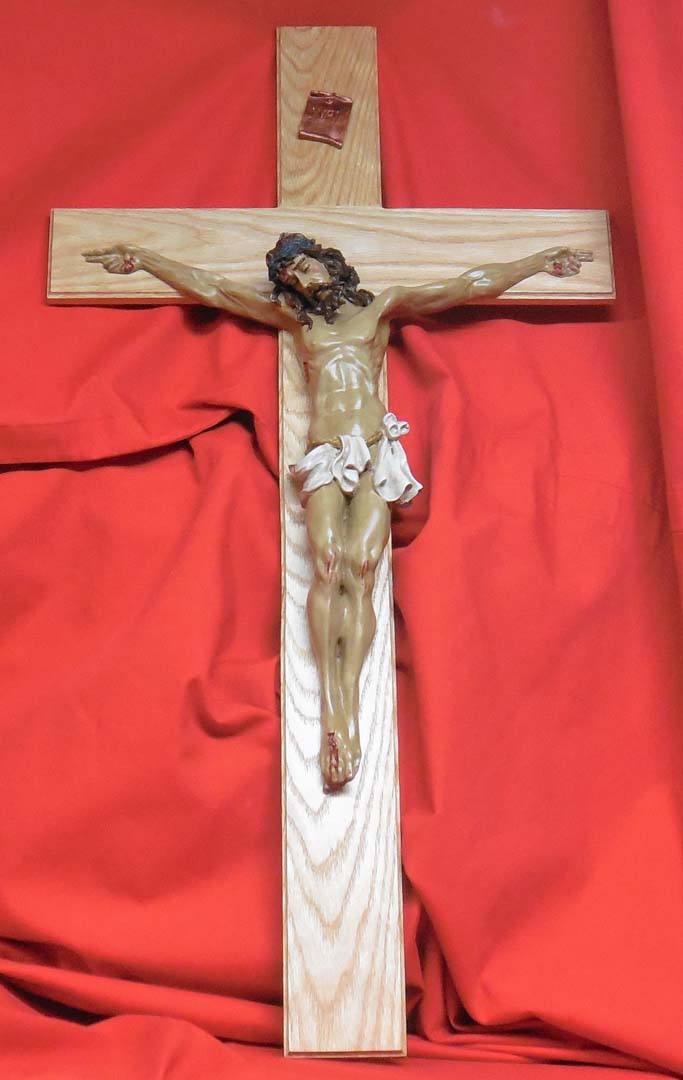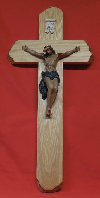 #433 Oak with hand painted polycrylic corpus. Made for St. Louis Hall in November, 2015. Size = 26" Price = $195 |