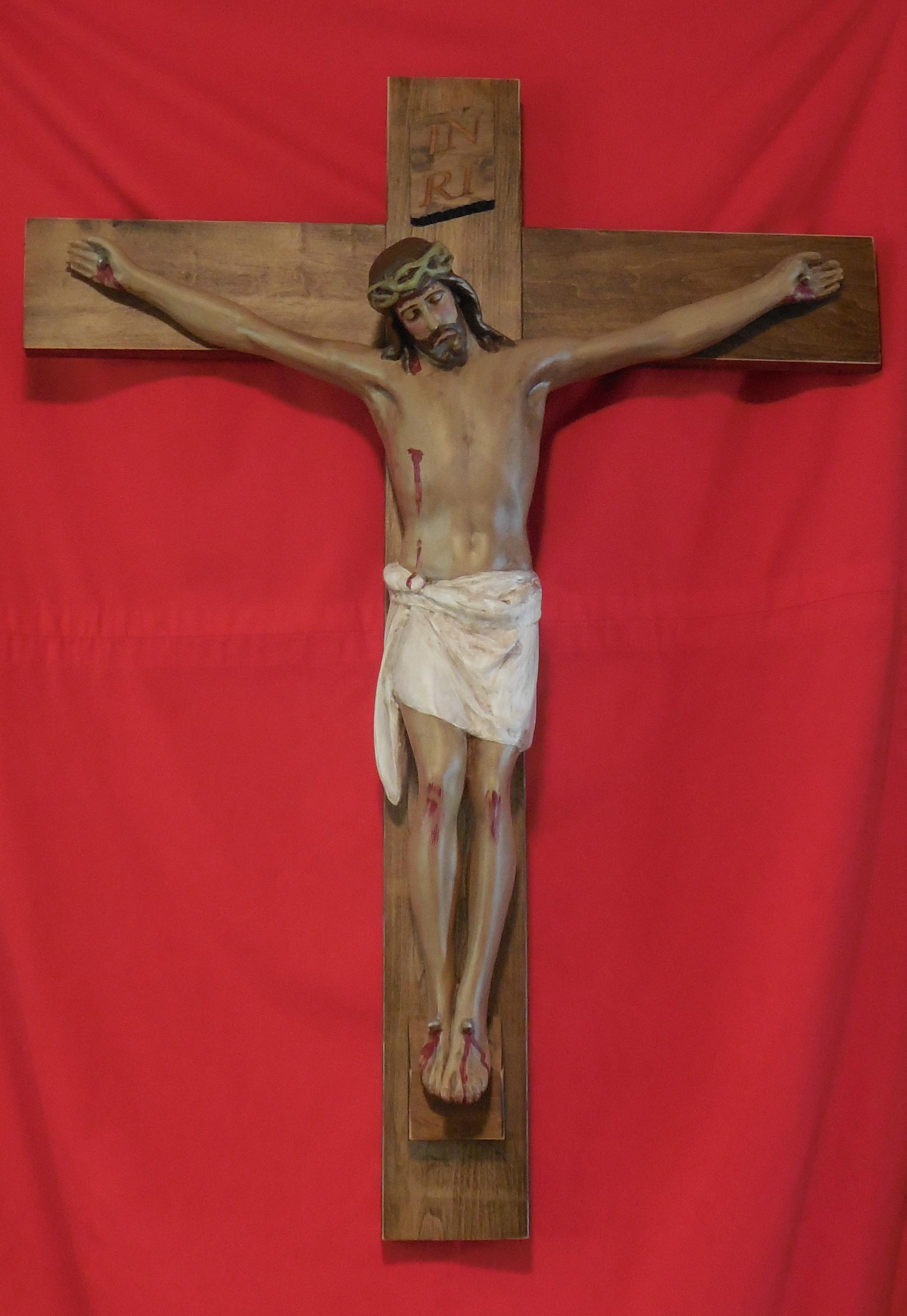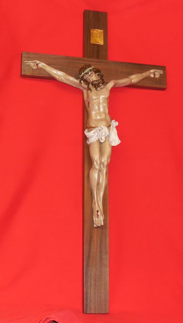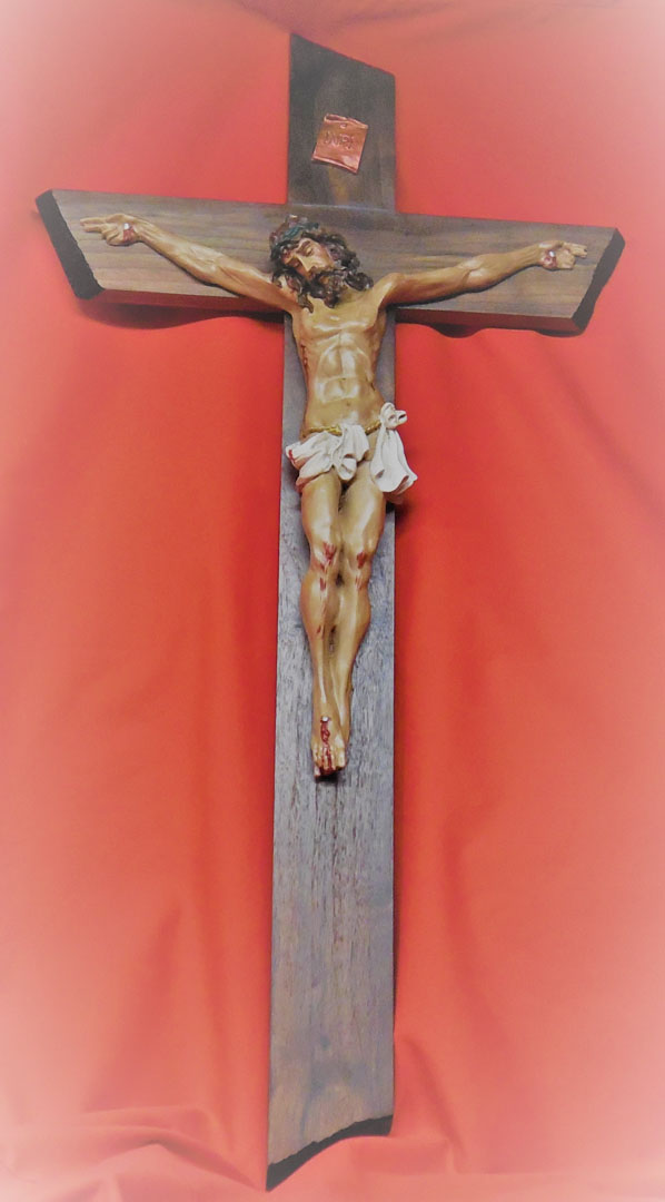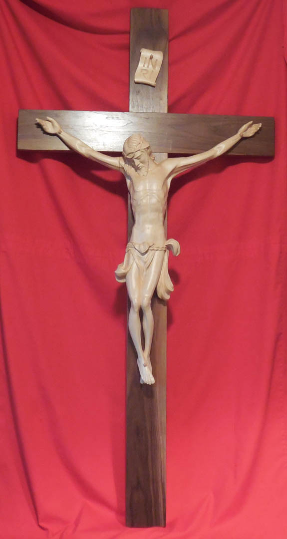 #532 Walnut cross with European hand-carved linden wood corpus. Made in December, 2017 for Blanchet High School Size = 76" Price = $3,500 |