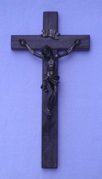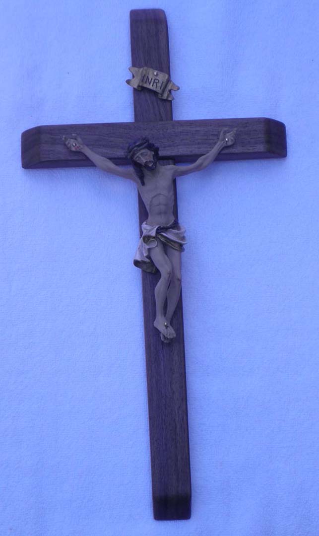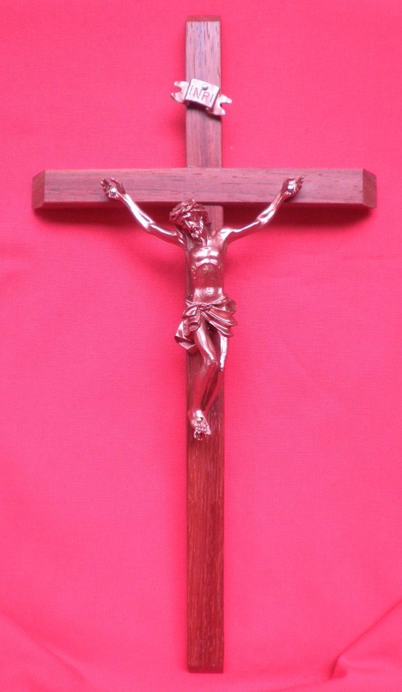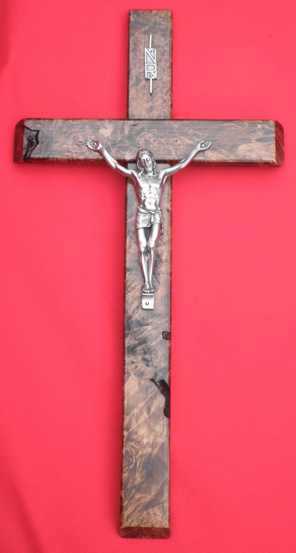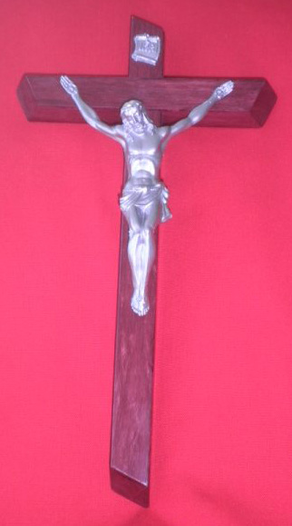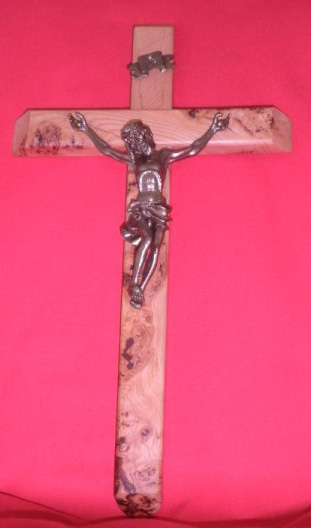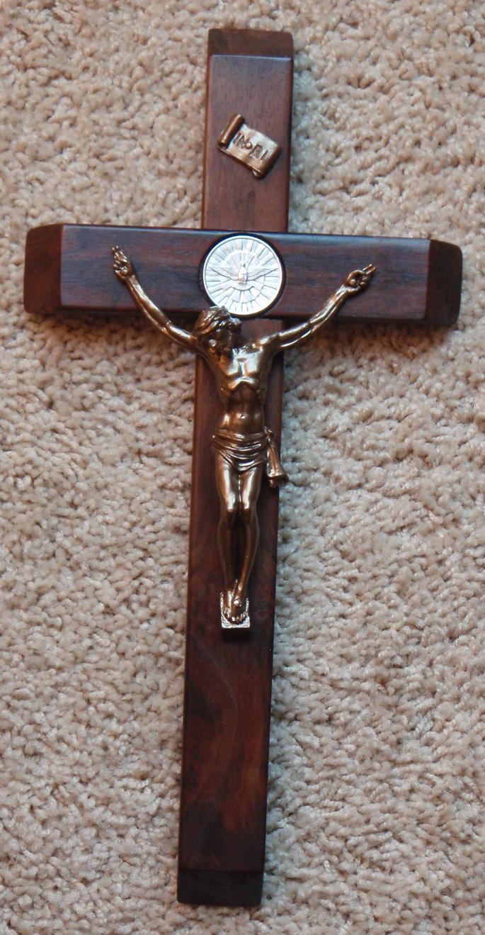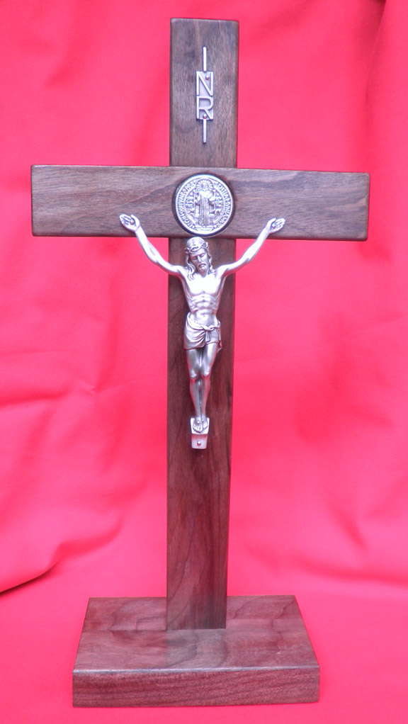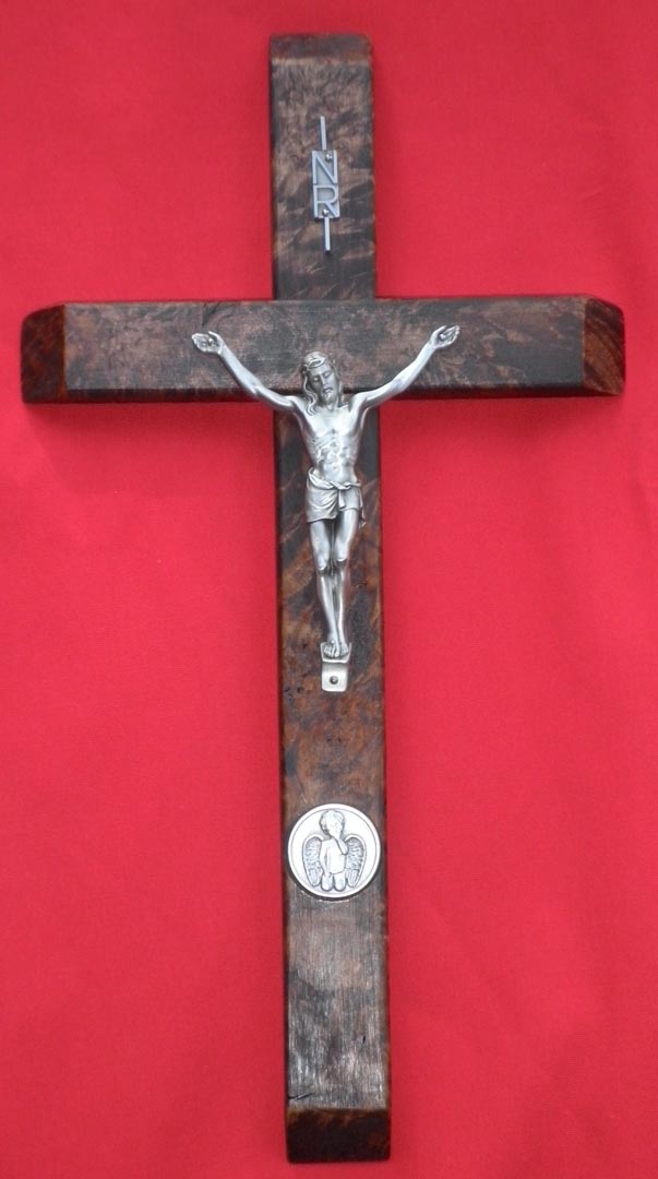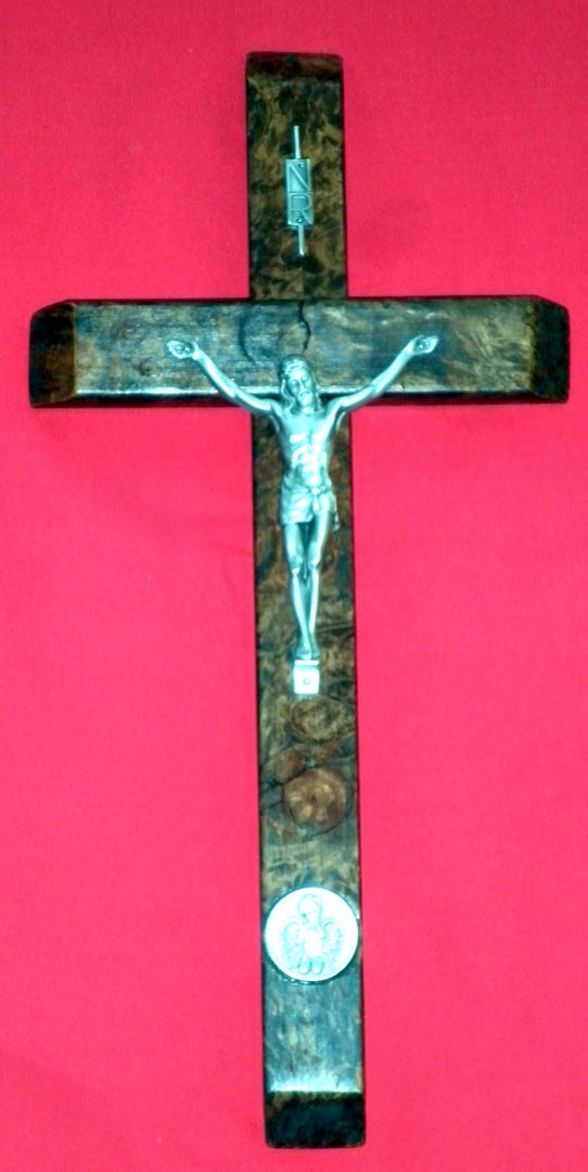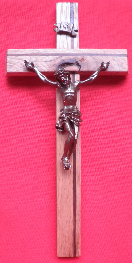 Purpleheart wood with pewter corpus and St. Benedict medal