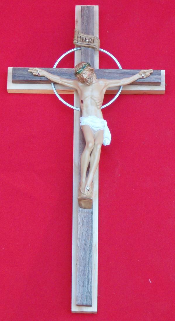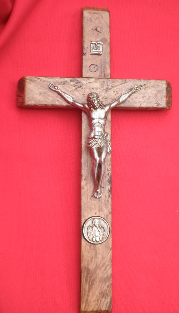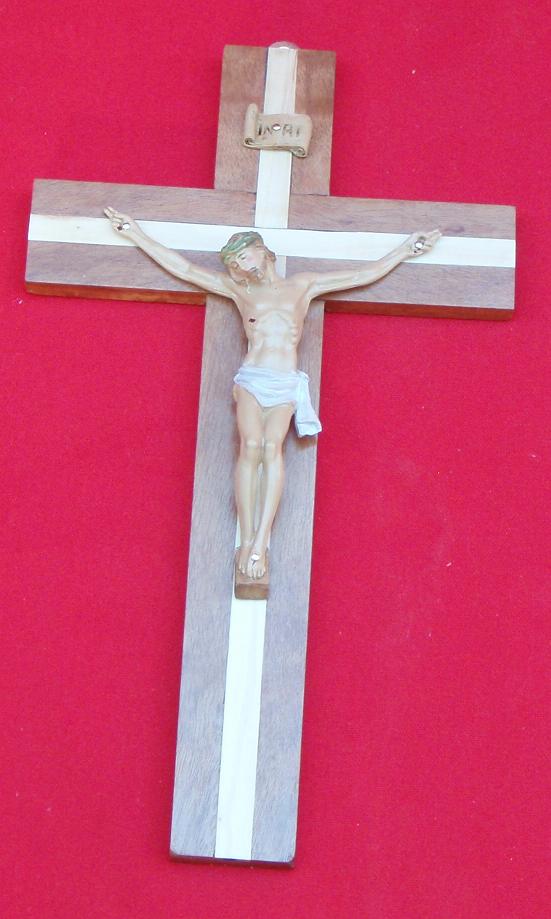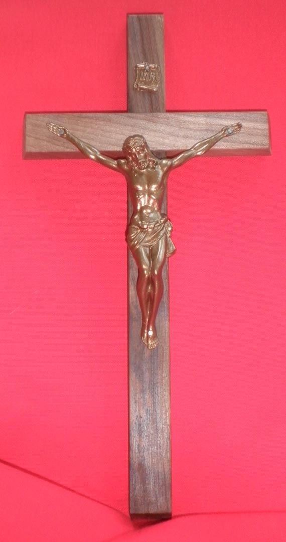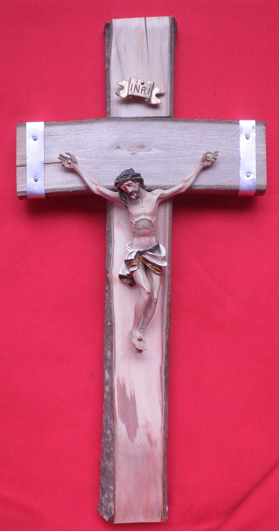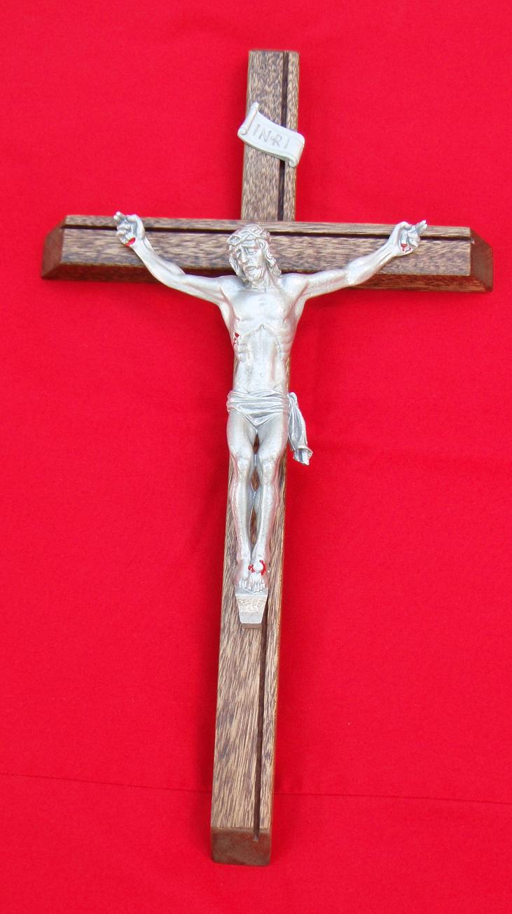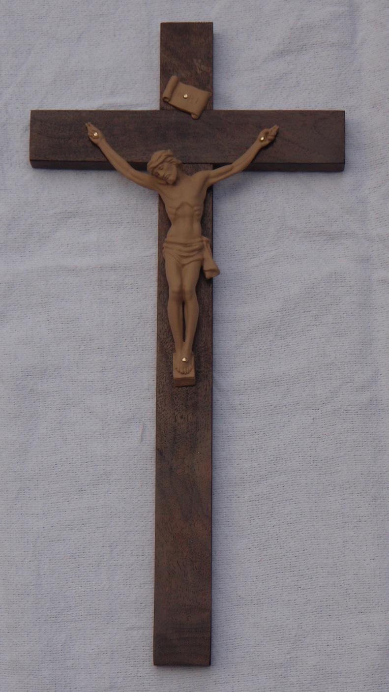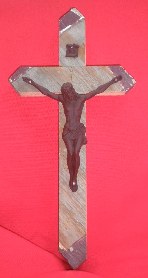 Purpleheart wood with pewter corpus and St. Benedict medal