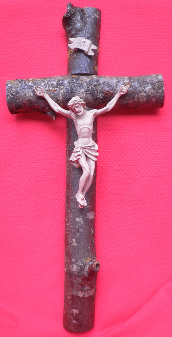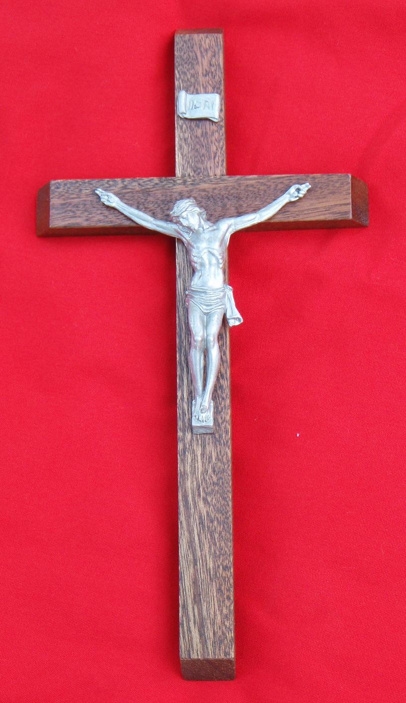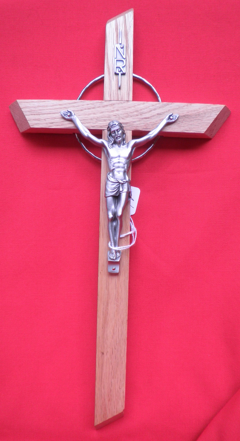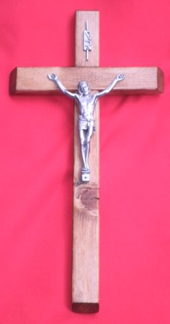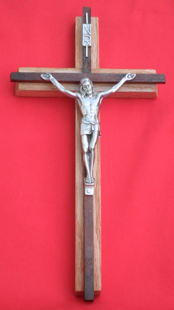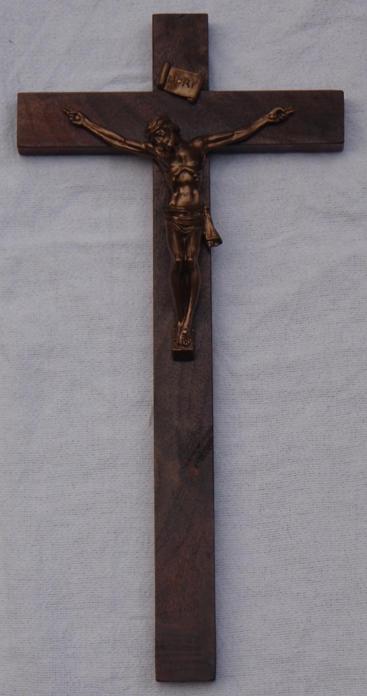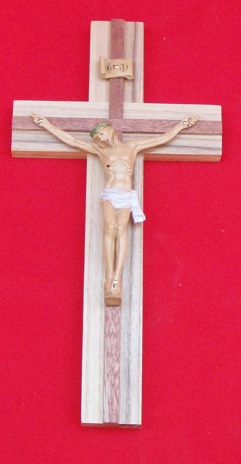 Purpleheart wood with pewter corpus and St. Benedict medal