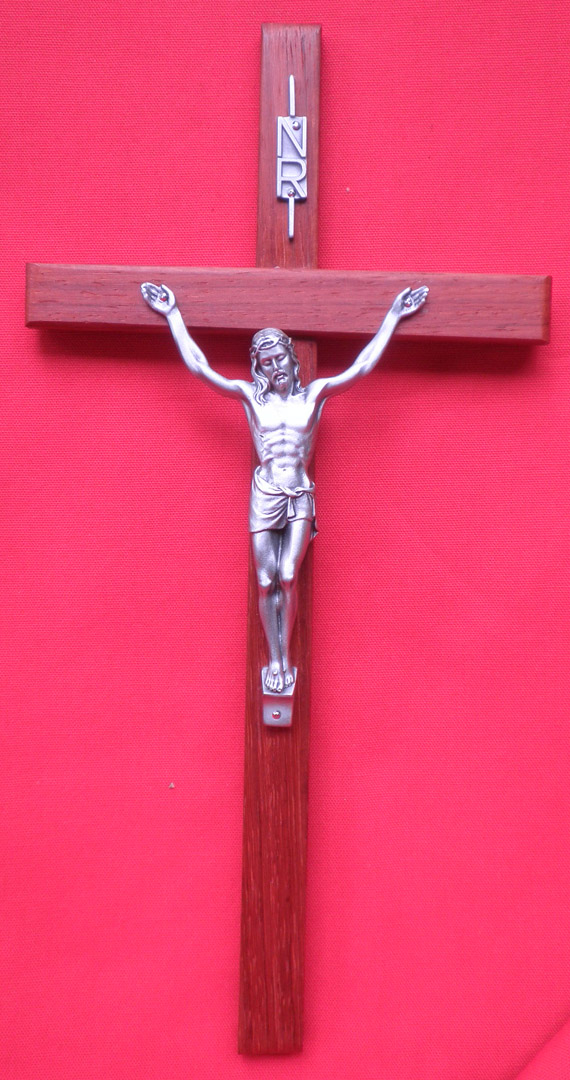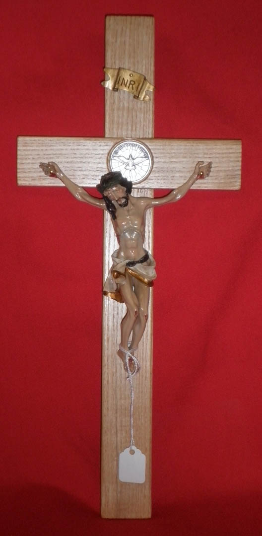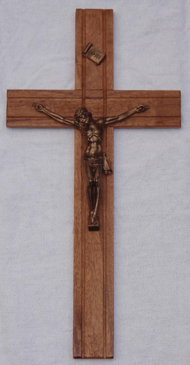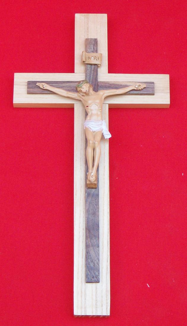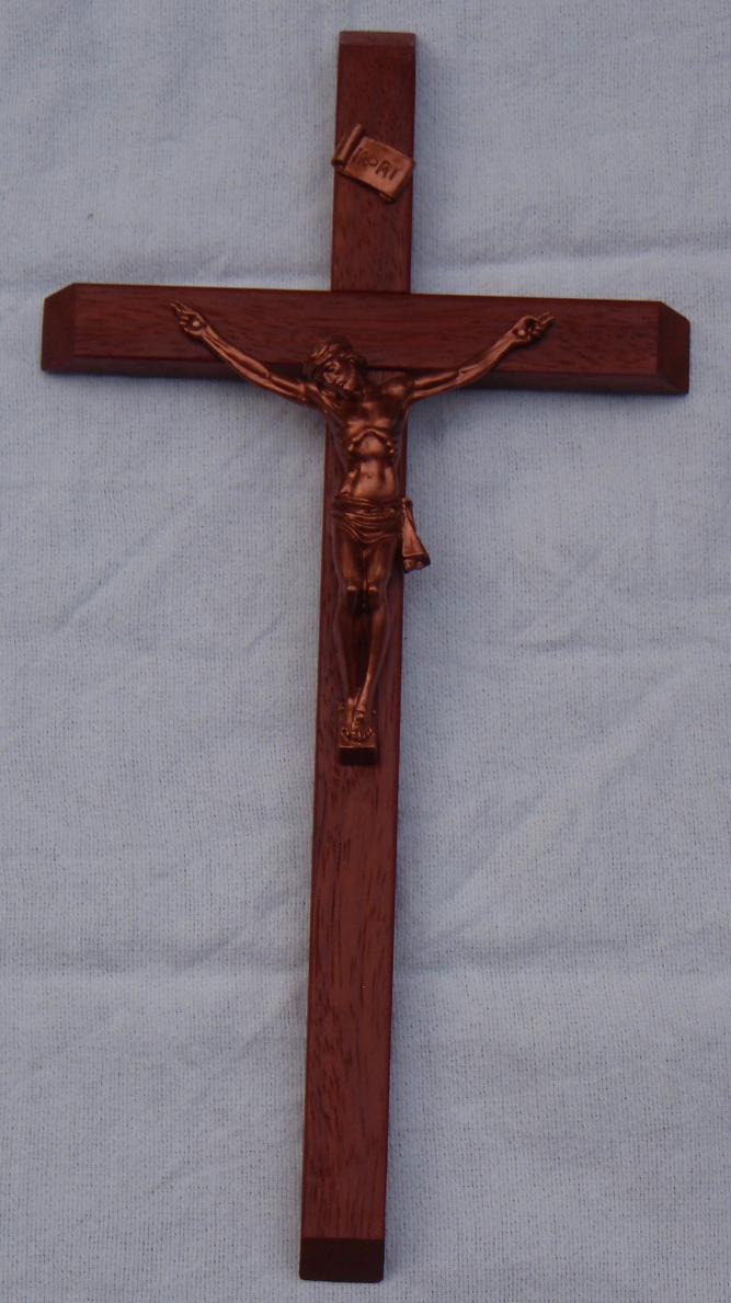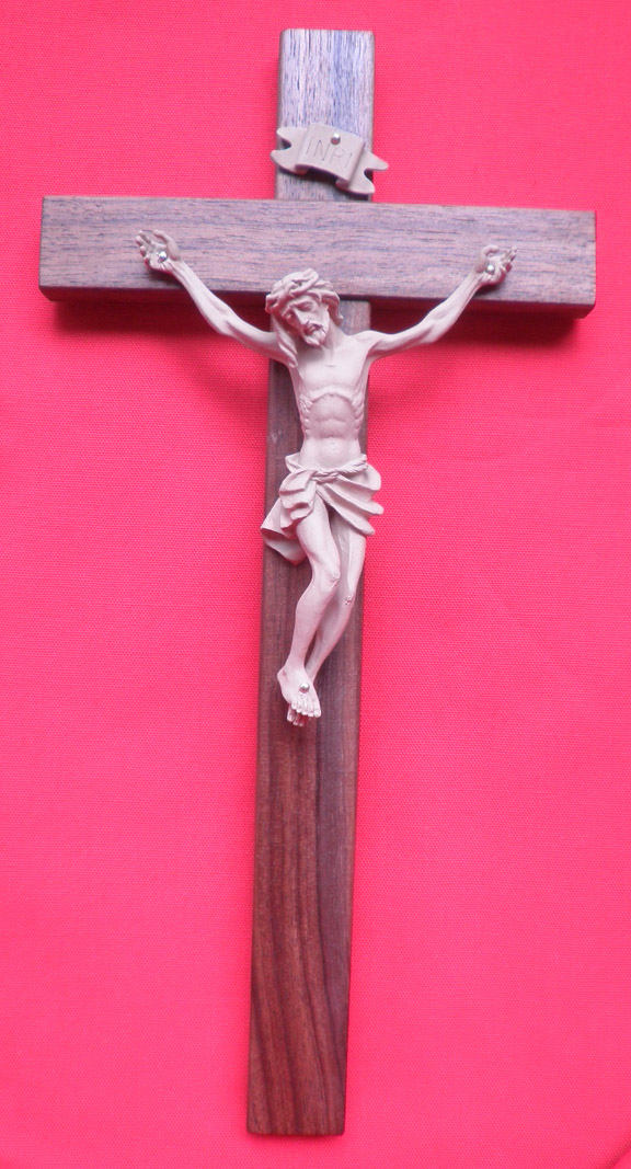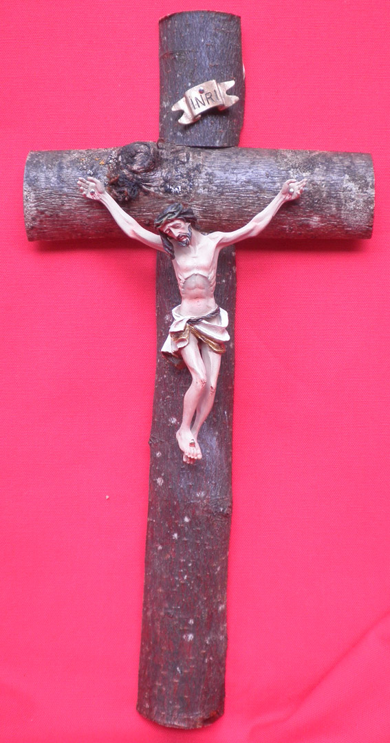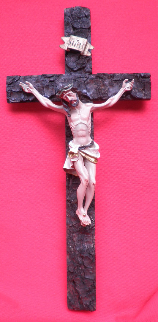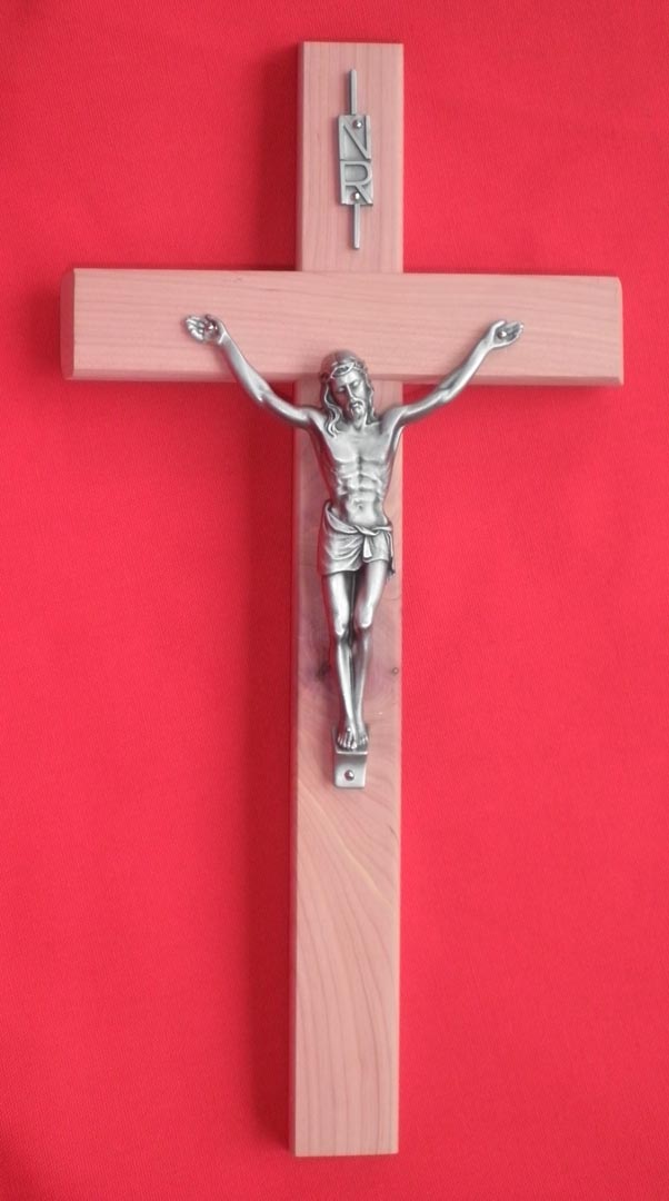 Purpleheart wood with pewter corpus and St. Benedict medal