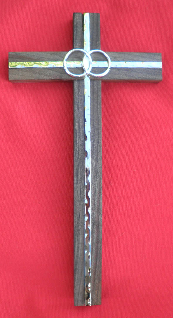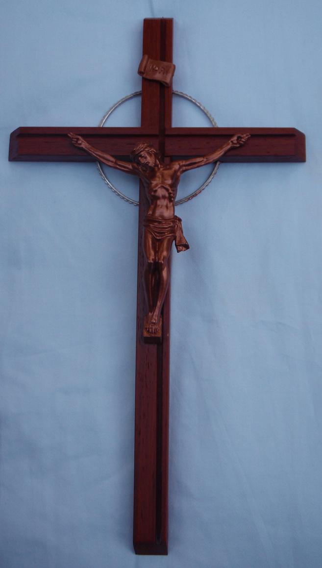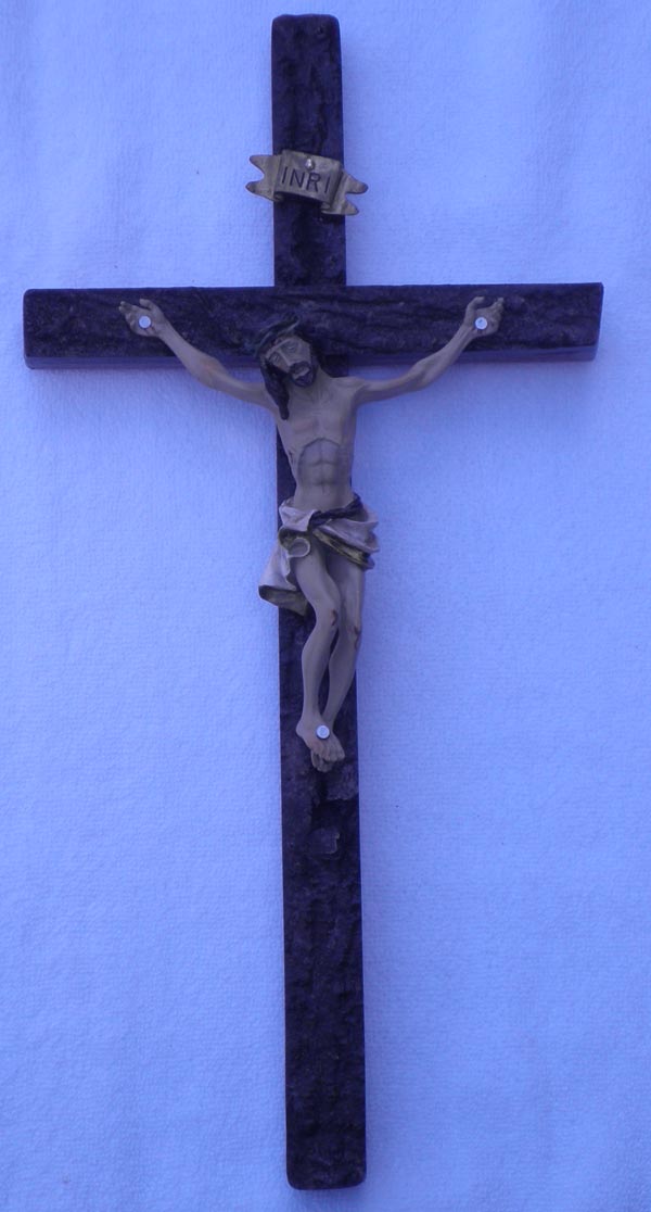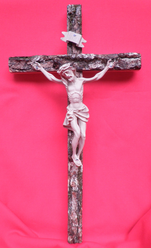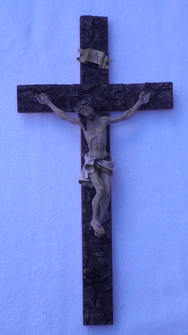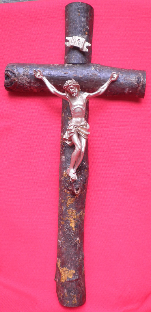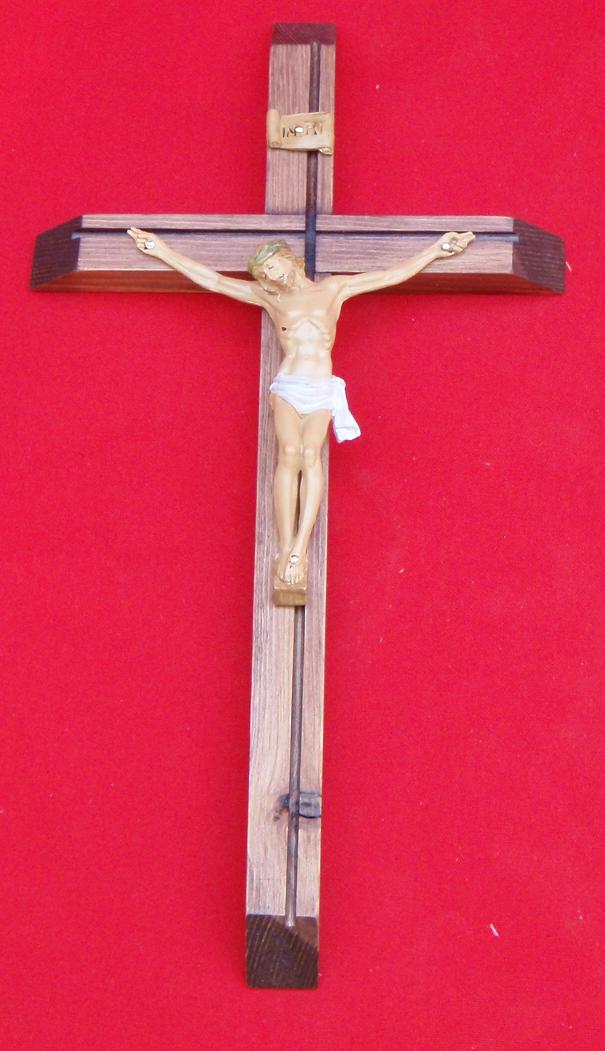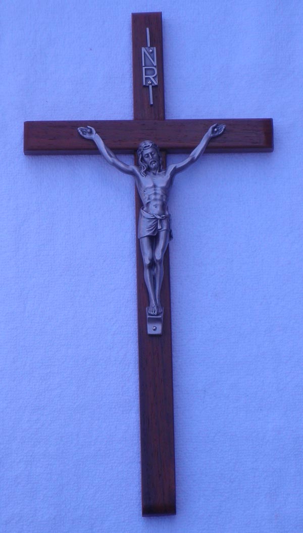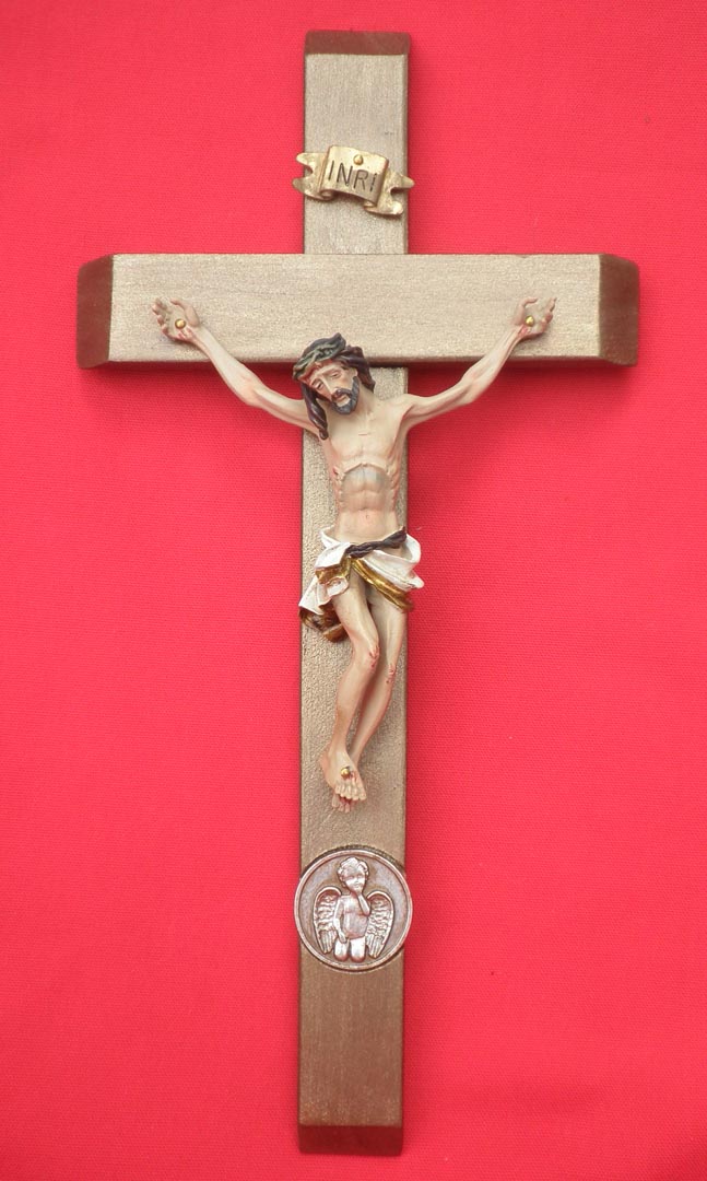 Purpleheart wood with pewter corpus and St. Benedict medal