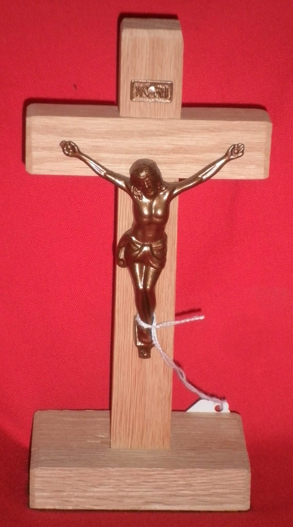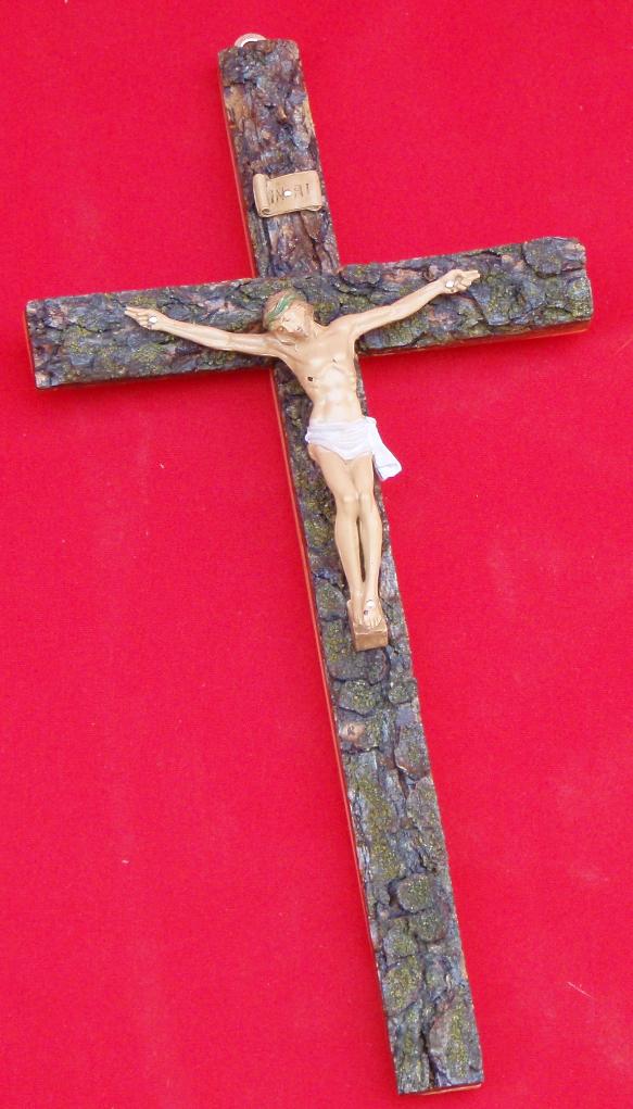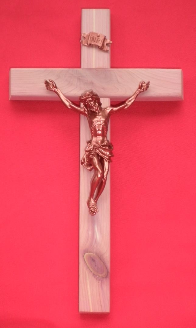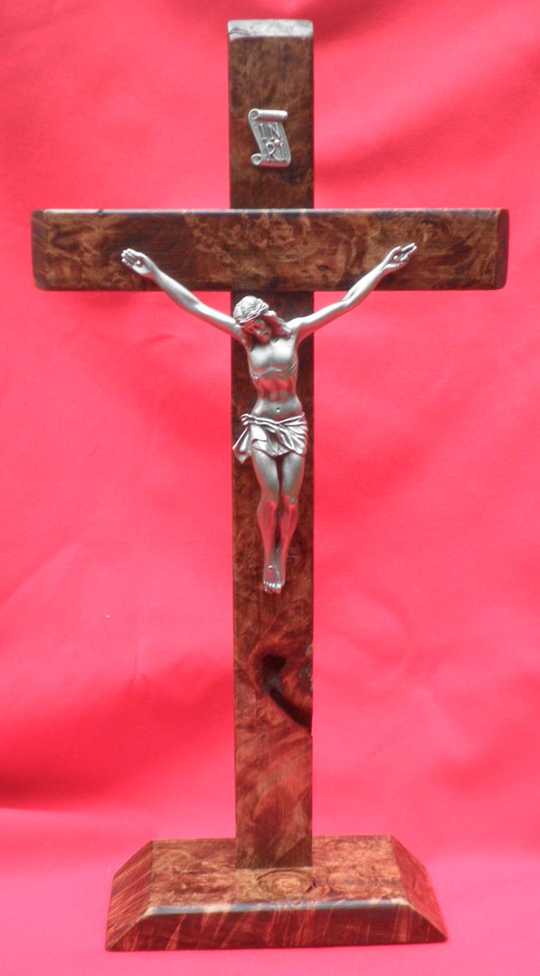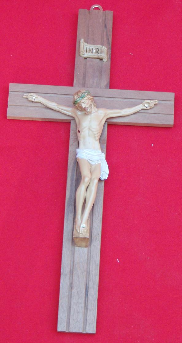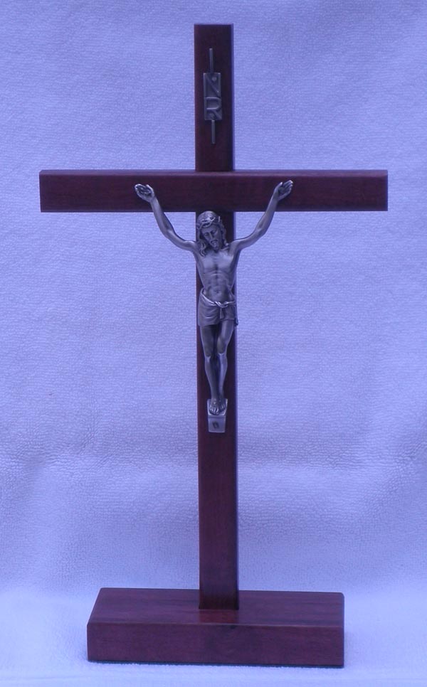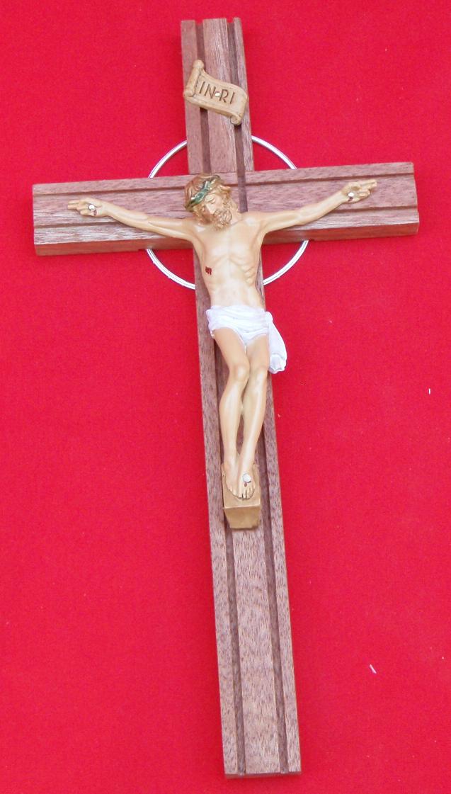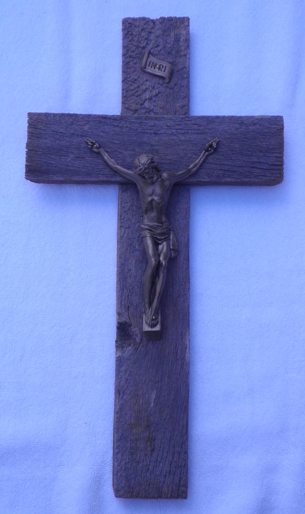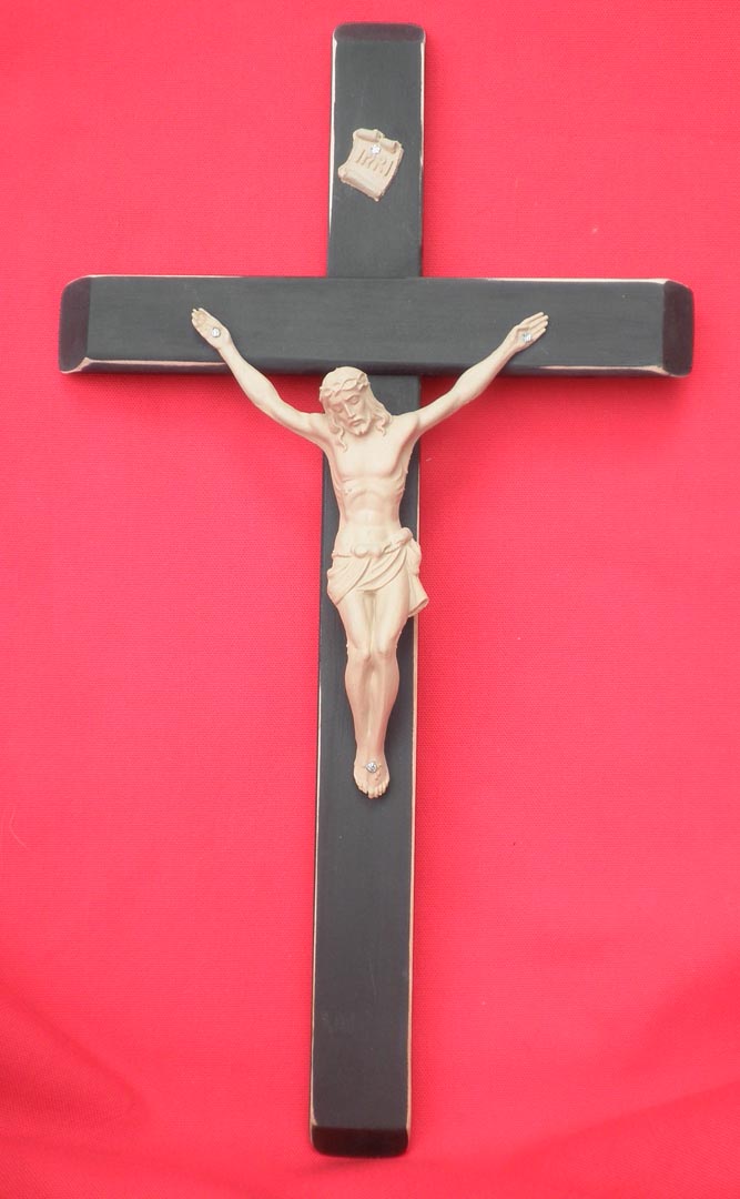 Purpleheart wood with pewter corpus and St. Benedict medal