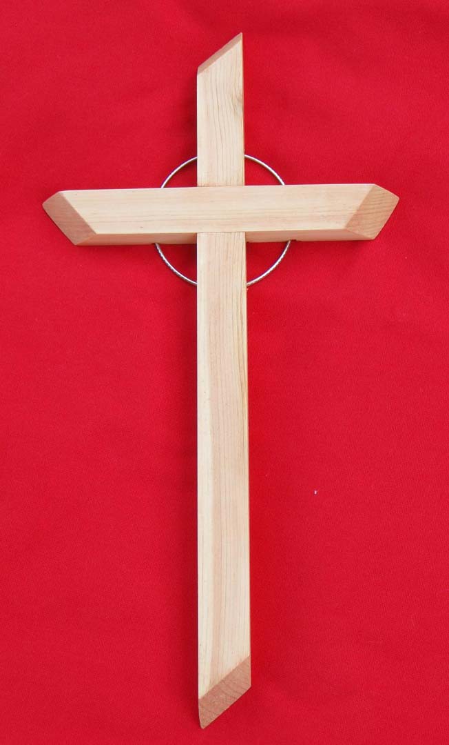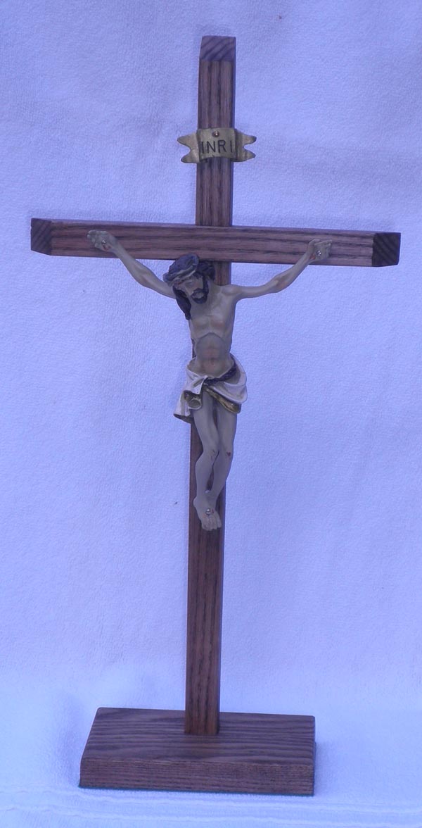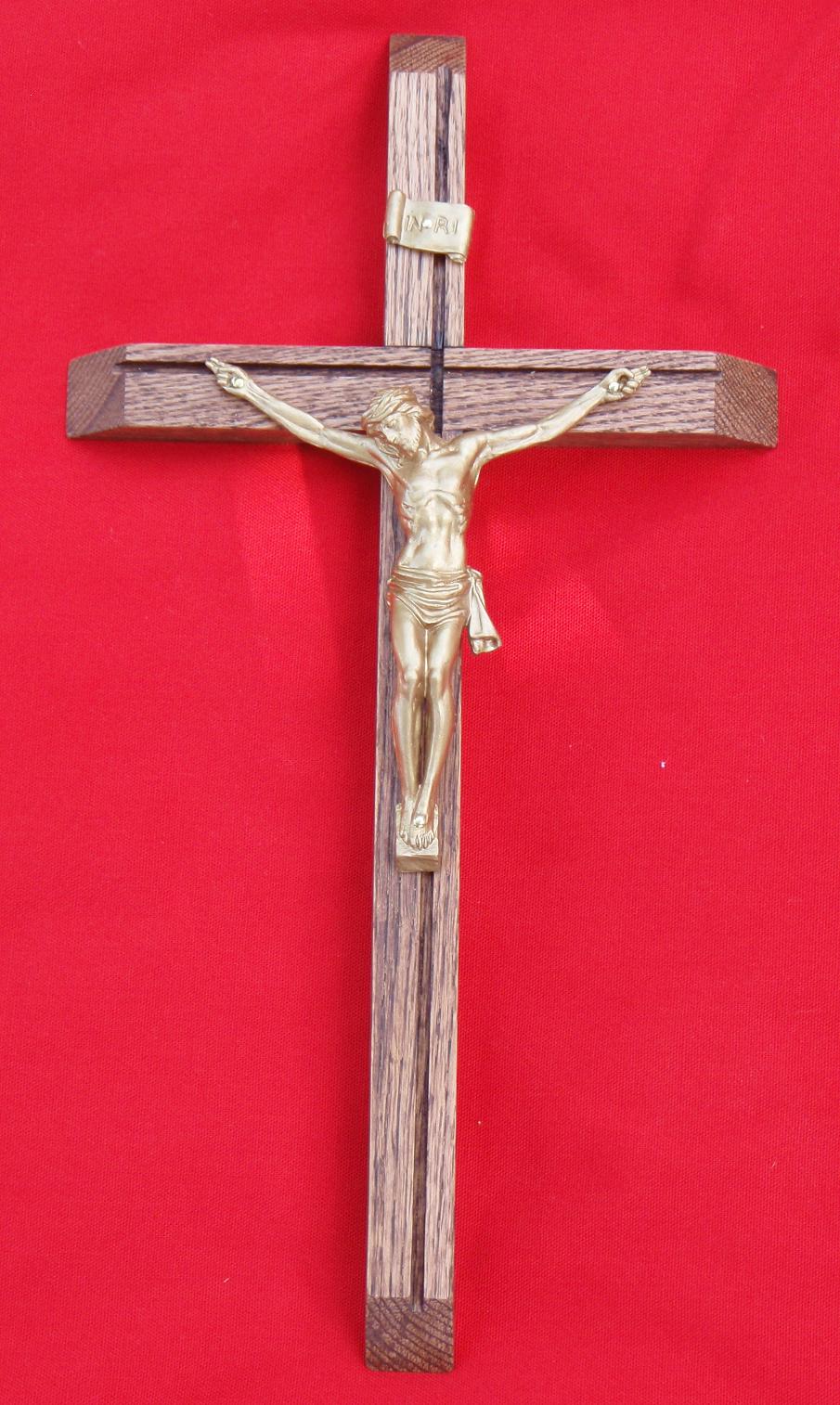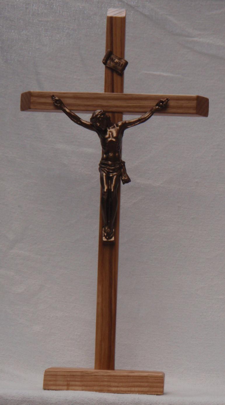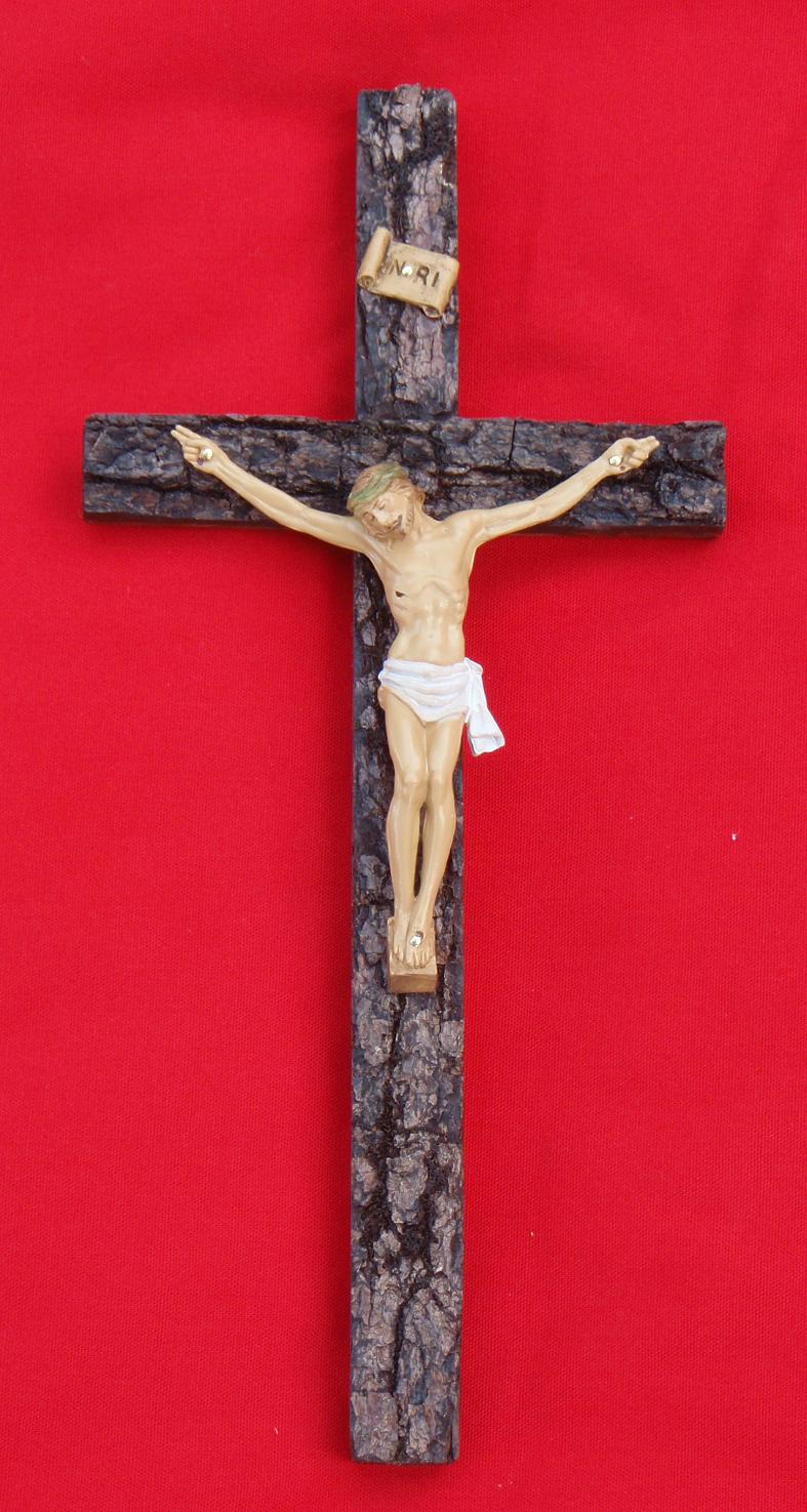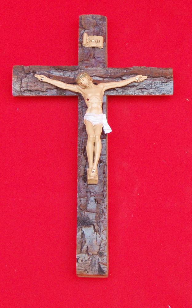 Purpleheart wood with pewter corpus and St. Benedict medal