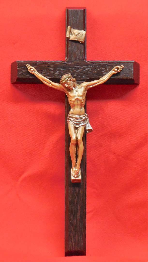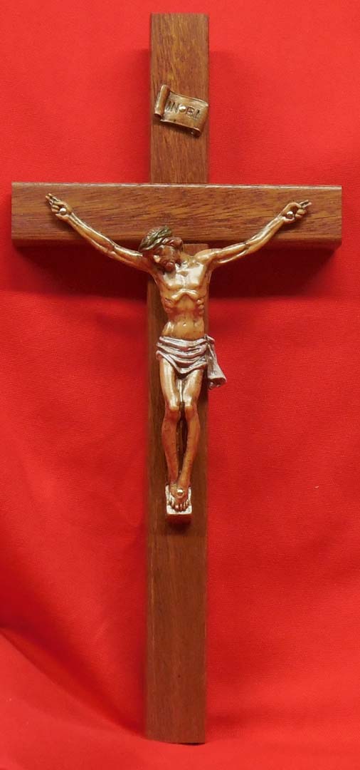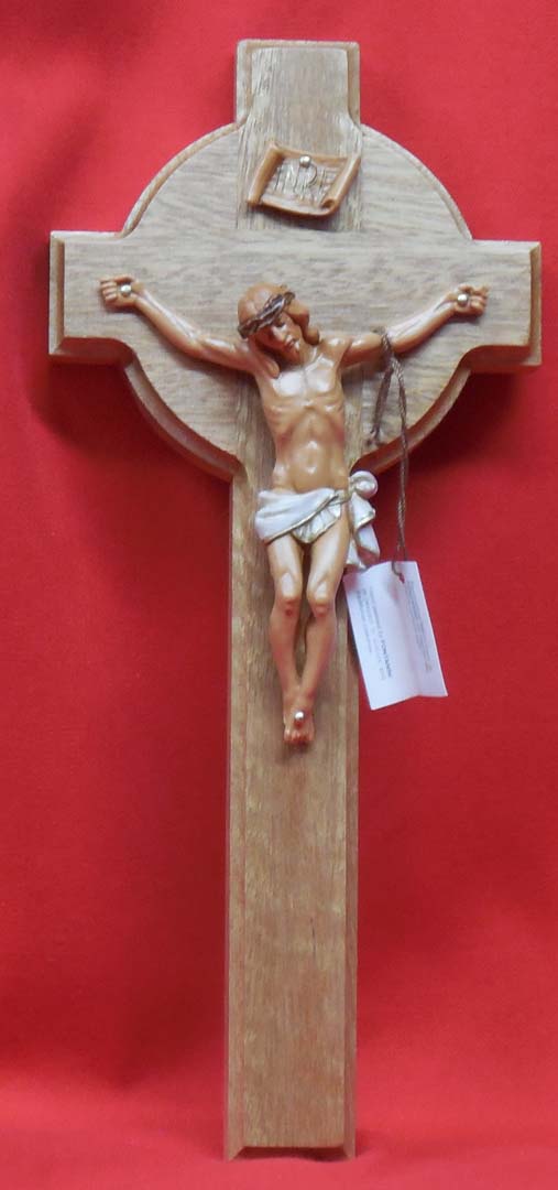 #470 St. Joseph oak with angled ends with resin corpus and medallion Made in July, 2016 Size = 13" Price = $54 |