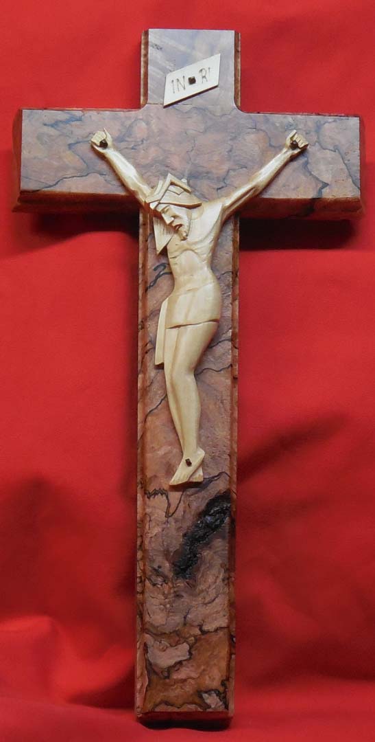 #433 Oak with hand painted polycrylic corpus. Made for St. Louis Hall in November, 2015. Size = 26" Price = $195 |