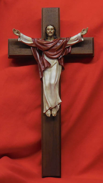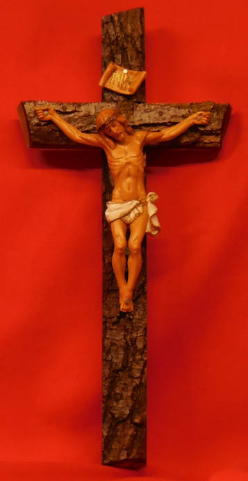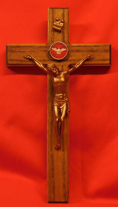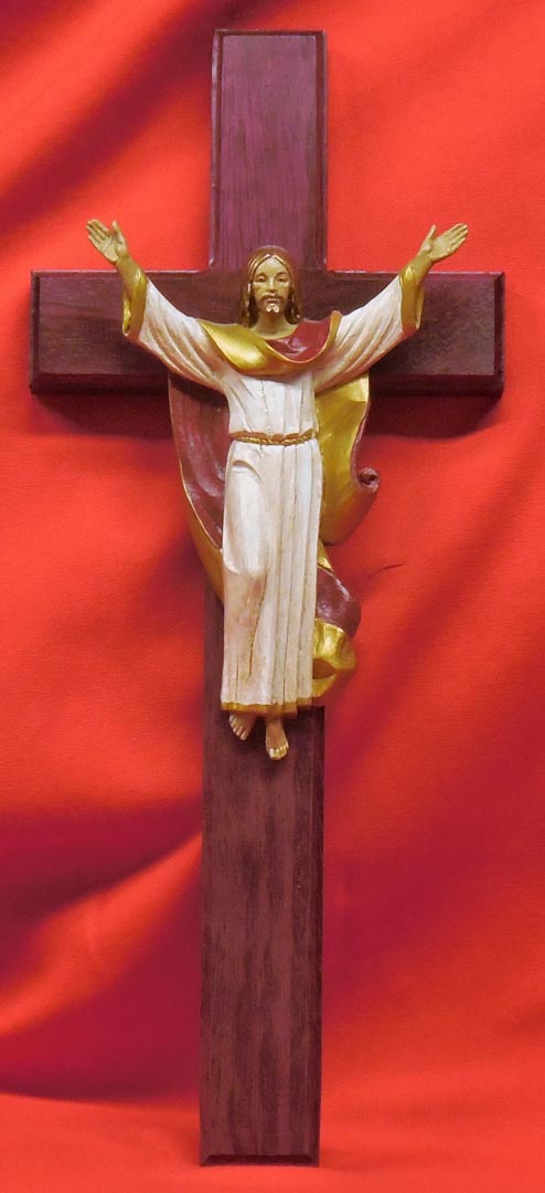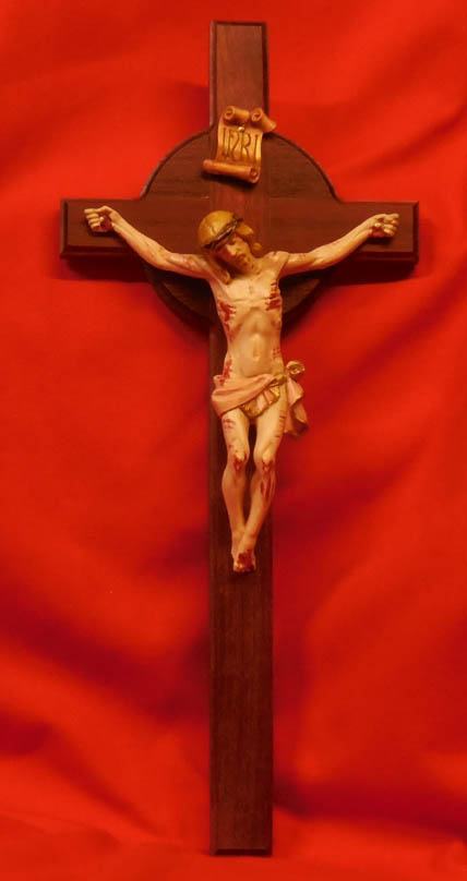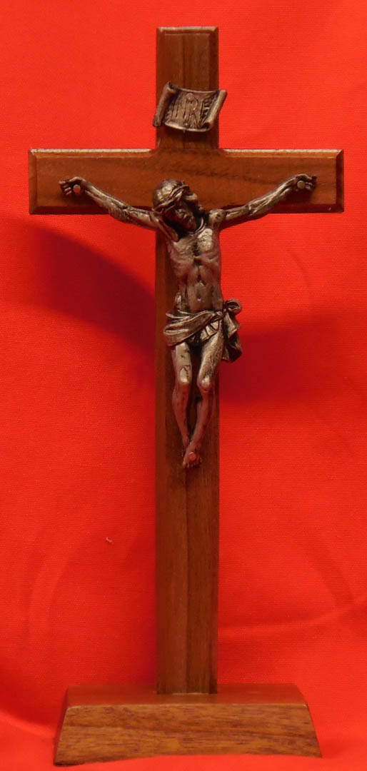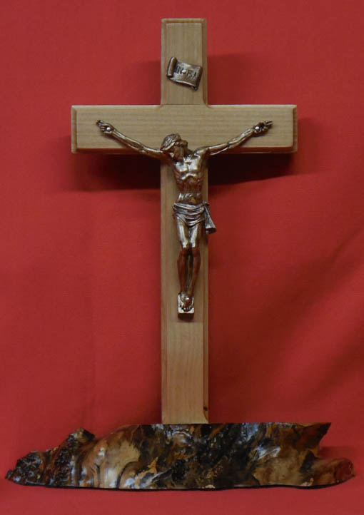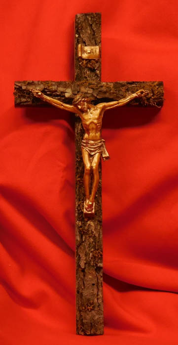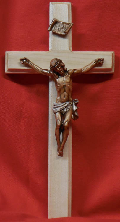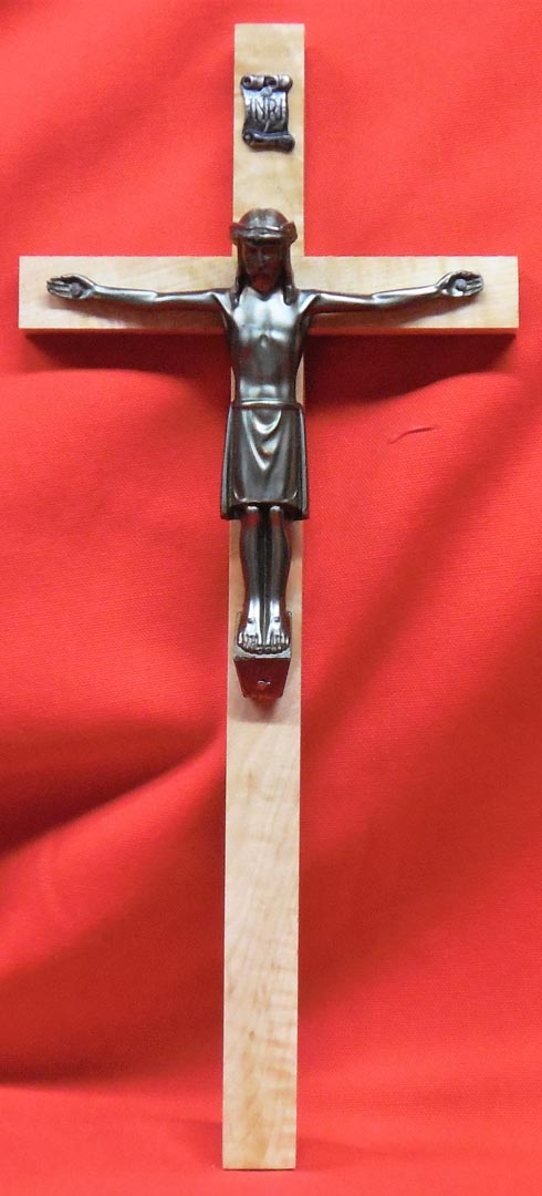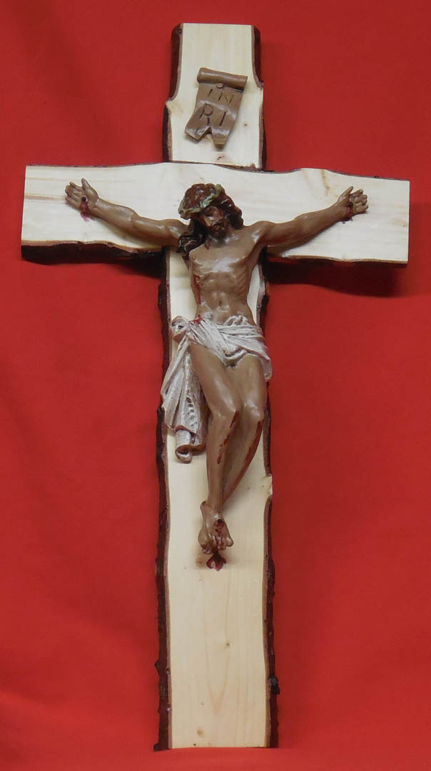 #528 Walnut with trimmed edges and polycrylic hand-painted antiqued corpus. Made in November, 2017 for Knights of Columbus in Shaw, OR Size = 22" Price = $195 |