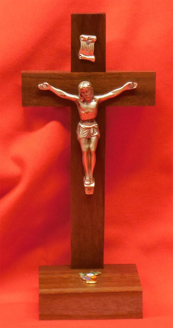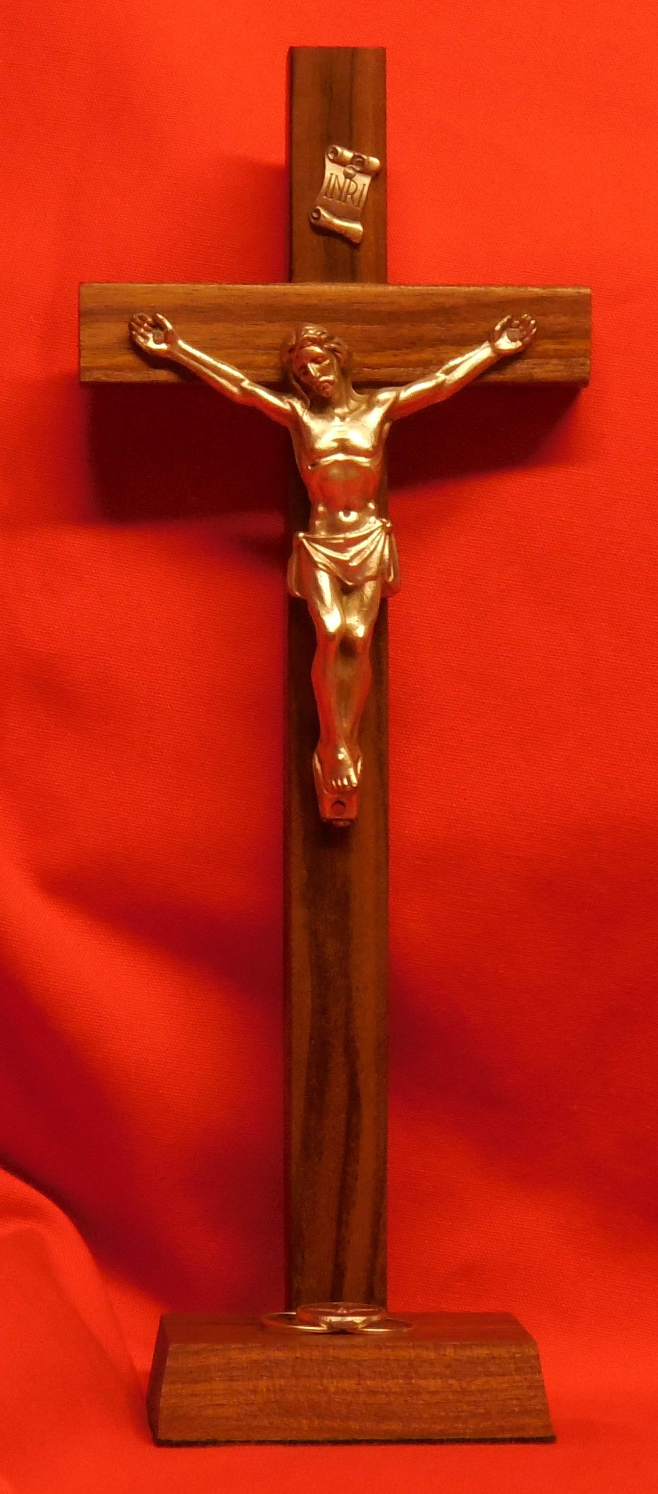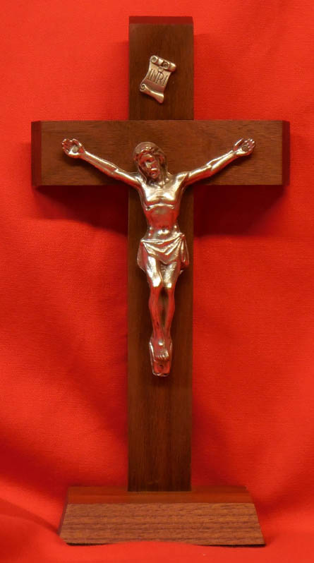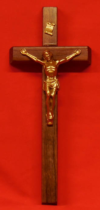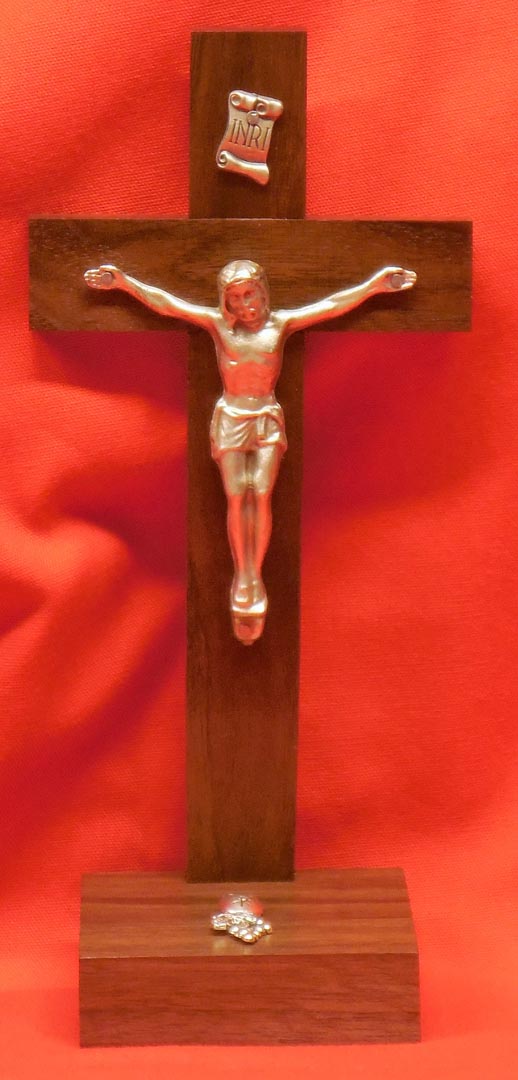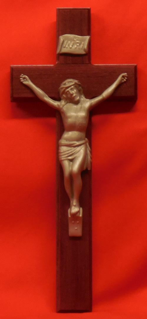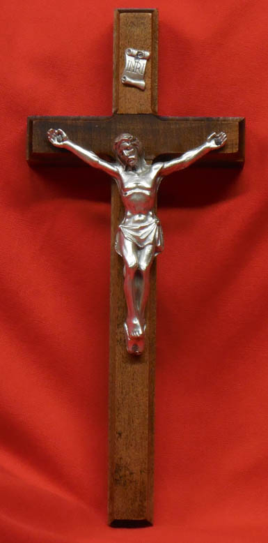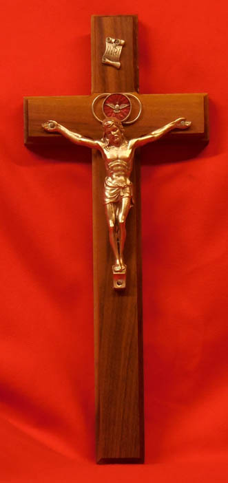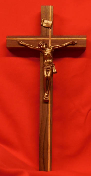 #516 Walnut with squared ends, Holy Eucharist medallion, and silver metal corpus Made in April, 2017 for Alex Size = 9" Price = $44 |